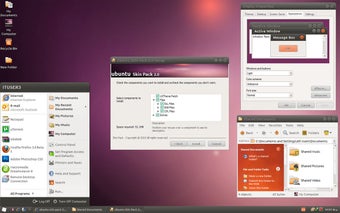 O assistente de instalação do Ubuntu Skin Pack faz todo o trabalho por você. Instala ícones, sons, papel de parede e outros detalhes para deixar o Windows XP irreconhecível. O tema Ubuntu Skin Pack modifica os ícones dos programas, as janelas, o painel de controle, o menu Iniciar e até o início de sessão para tingir tudo com as cores do Ubuntu.
